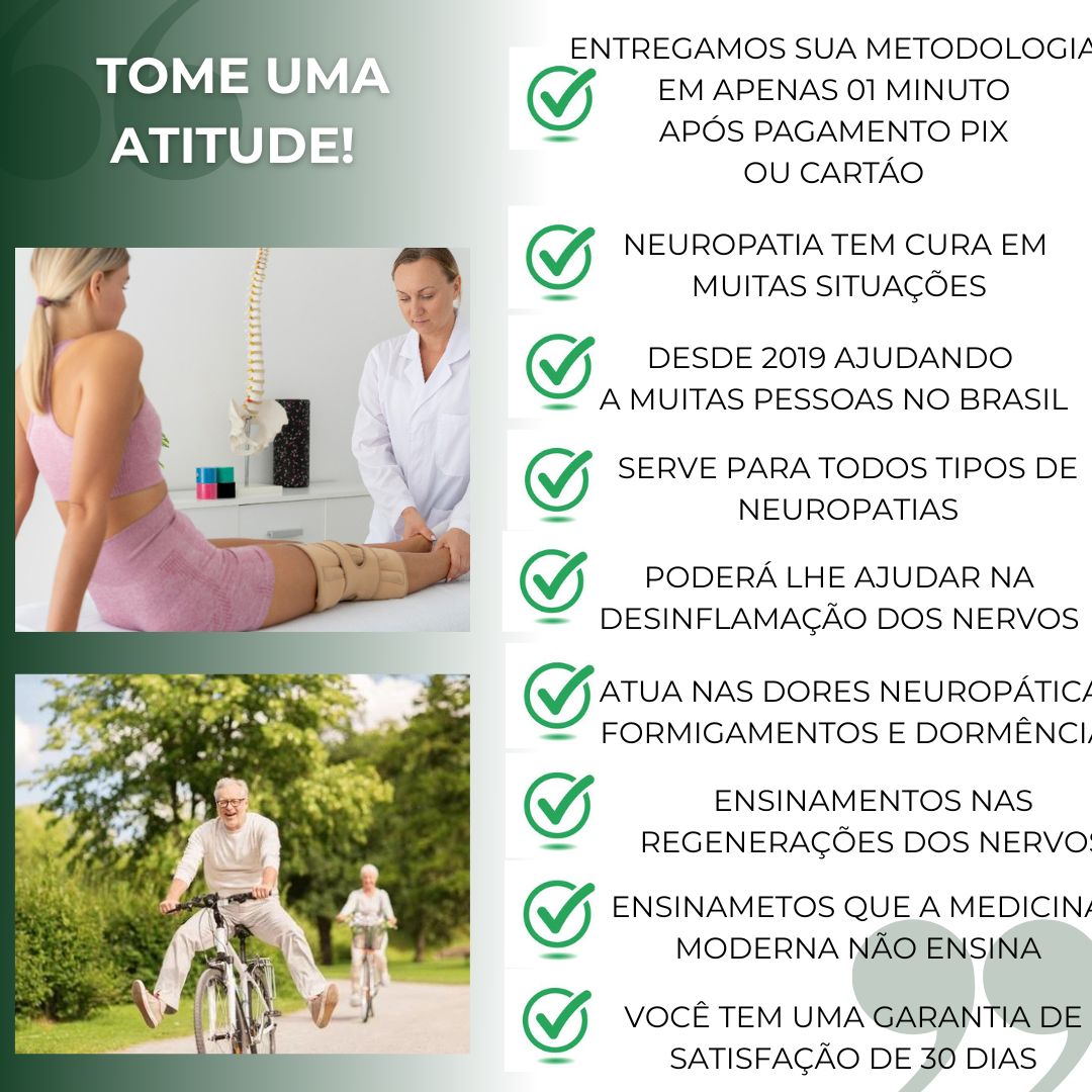 O tratamento alternativo especial Como Vencer a Neuropatia Oficial, traz a você muitos ensinamentos que você irá aprender e colocar em prática que irão ajudar na desinflamação e saúde dos nervos.
